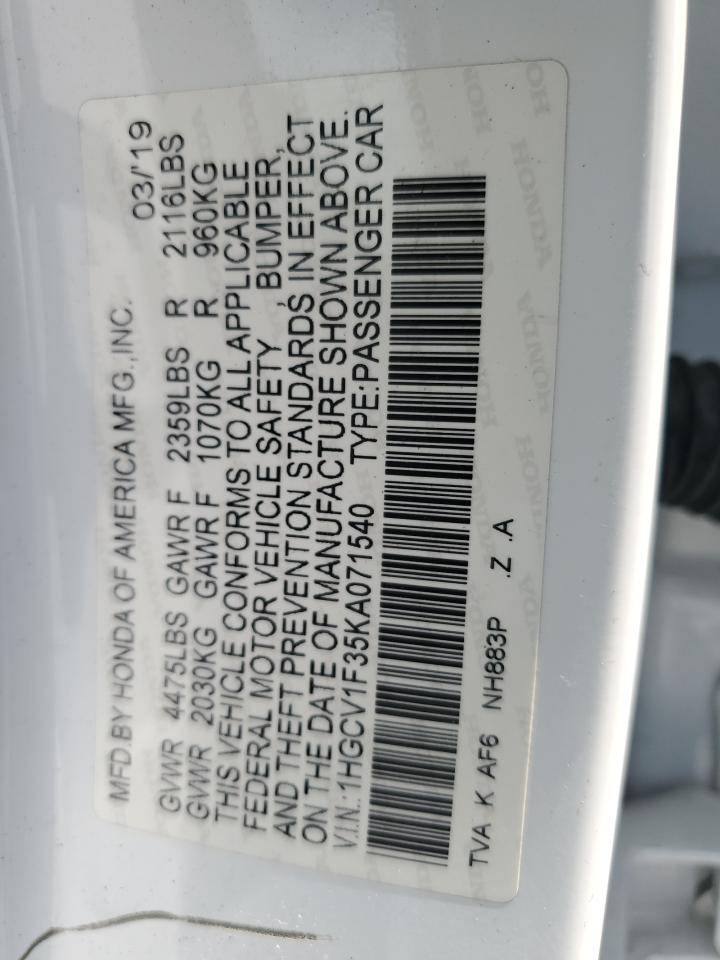 HONDA ACCORD 1.5 2019 р.в., (1HGCV1F35KA071540) з США