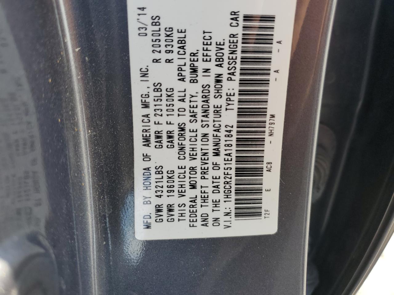 Колір СірийЦиліндри 4VIN 1HGCR2F51EA181842Стан Заводиться та їде (перевірено)Ушкодження Передня або задняДата аукціону 2025-11-03