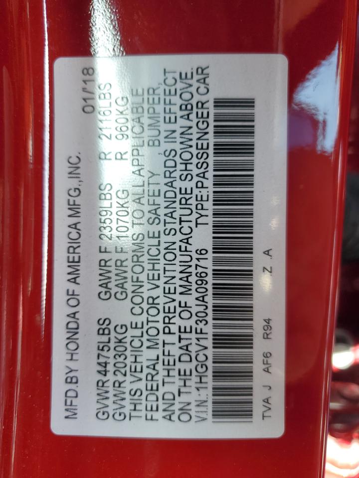 HONDA ACCORD 1.5 2018 р.в., (1HGCV1F30JA096716) з США