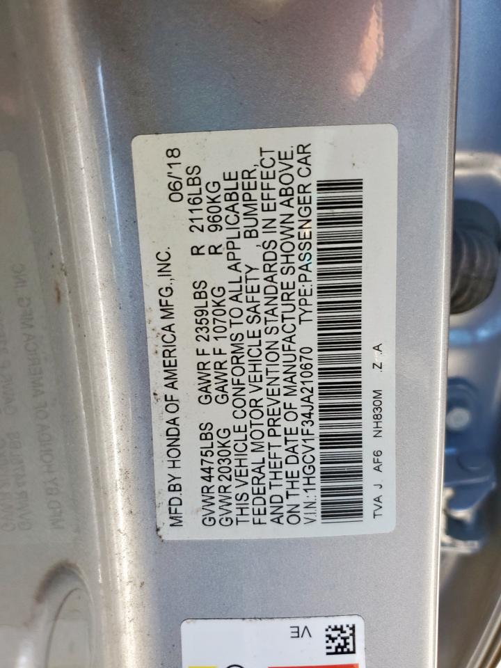 HONDA ACCORD 1.5 2018 р.в., (1HGCV1F34JA210670) з США