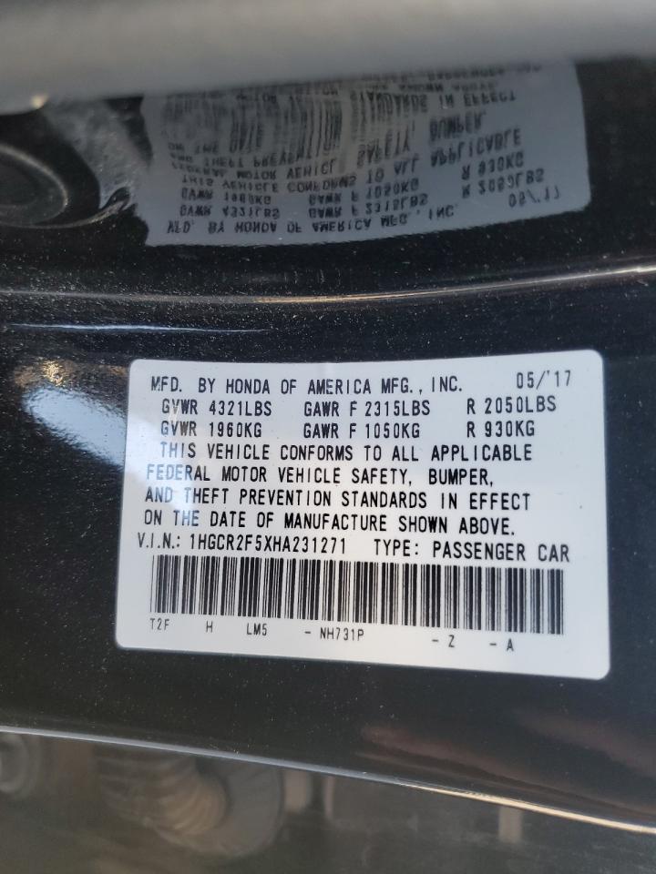 Колір ЧорнийЦиліндри 4VIN 1HGCR2F5XHA231271Стан ЗаводитьсяУшкодження Передня або задня