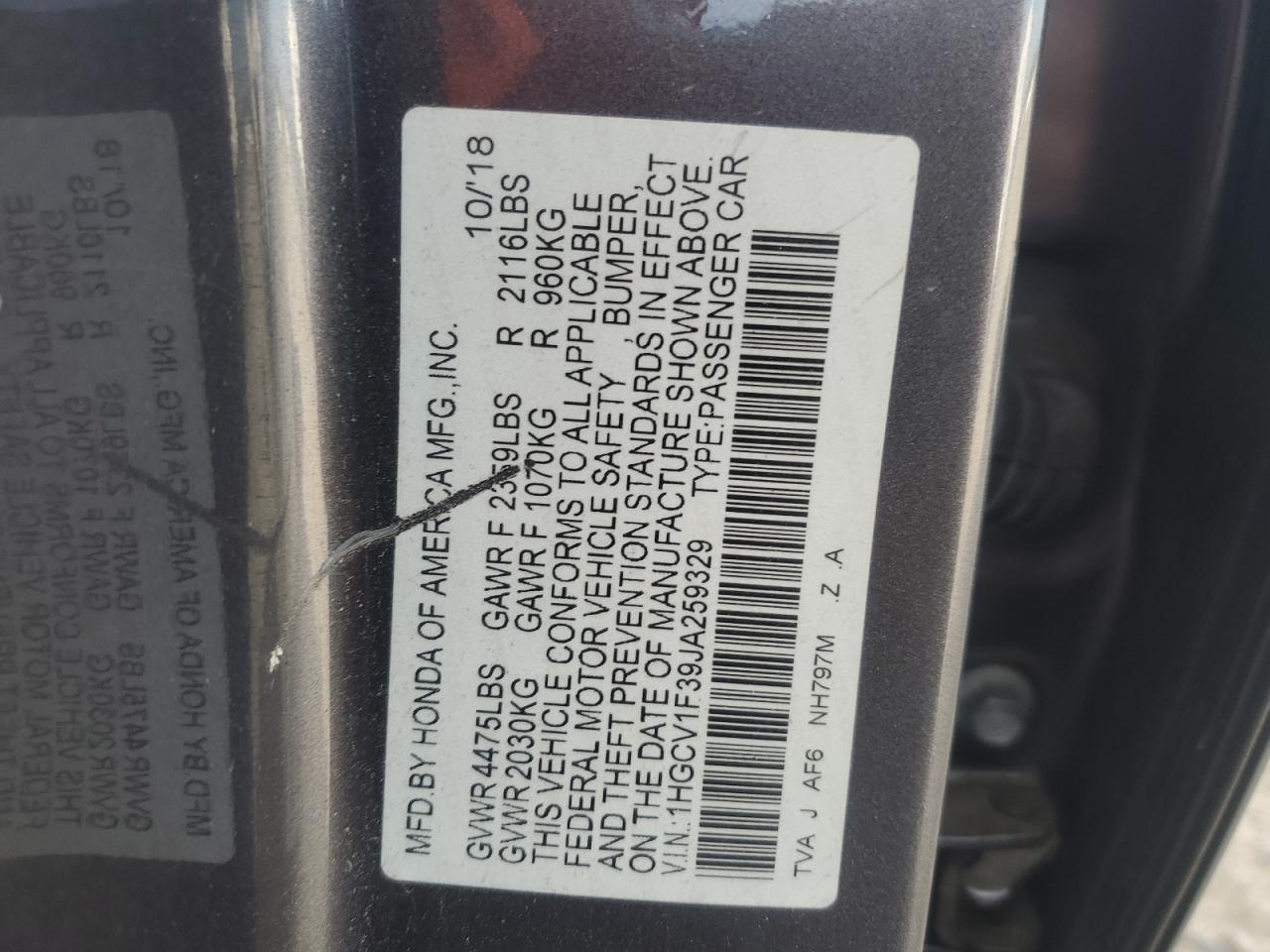HONDA ACCORD 1.5 2018 р.в., (1HGCV1F39JA259329) з США