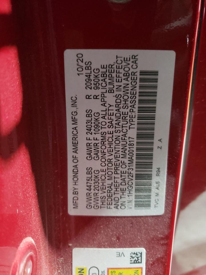 HONDA ACCORD 2.0 2021 р.в., (1HGCV2F31MA001817) з США