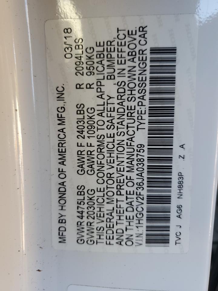 HONDA ACCORD 2.0 2018 р.в., (1HGCV2F36JA038759) з США