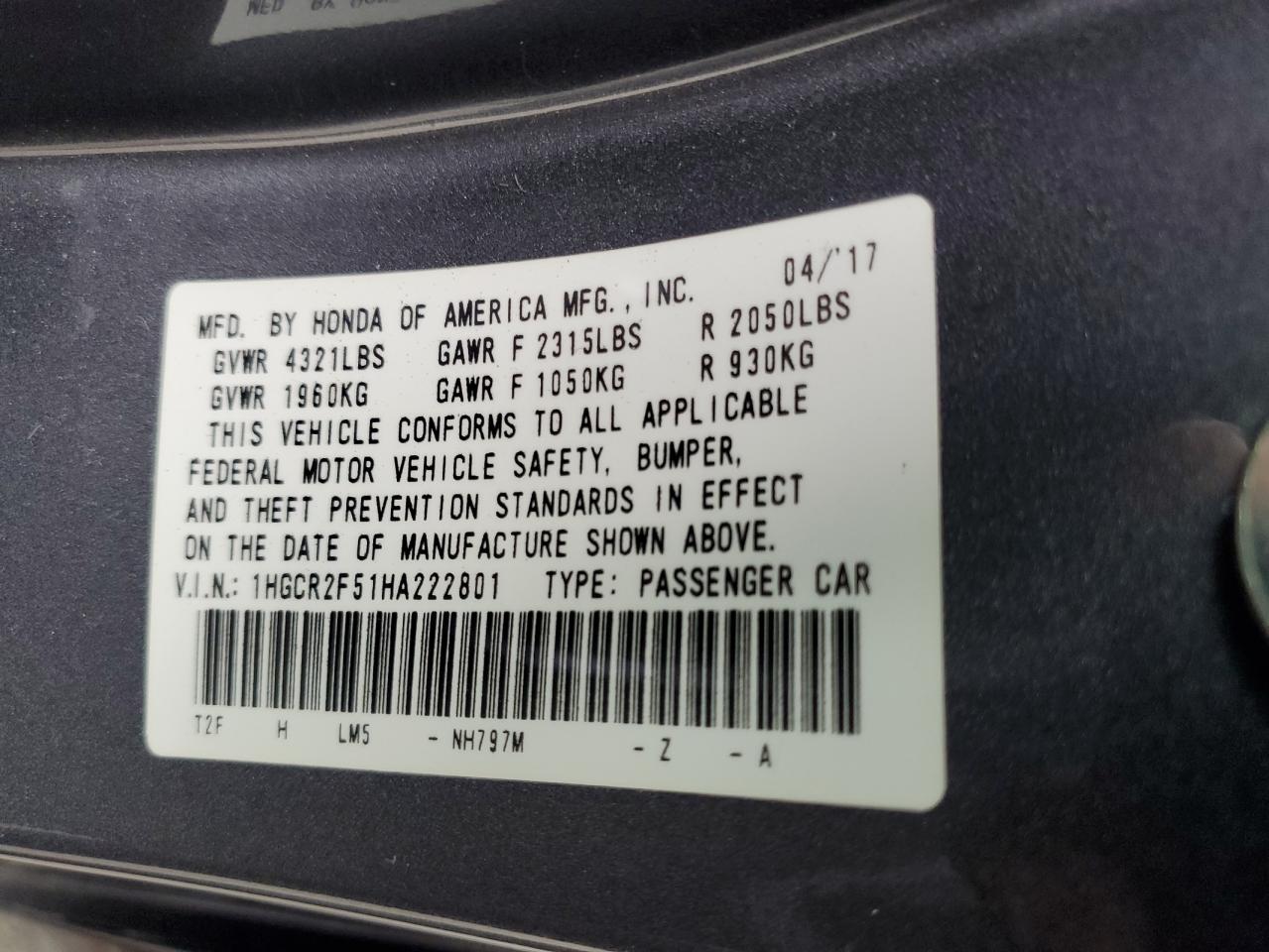 Колір СірийЦиліндри 4VIN 1HGCR2F51HA222801Стан Заводиться та їде (перевірено)Ушкодження Задня