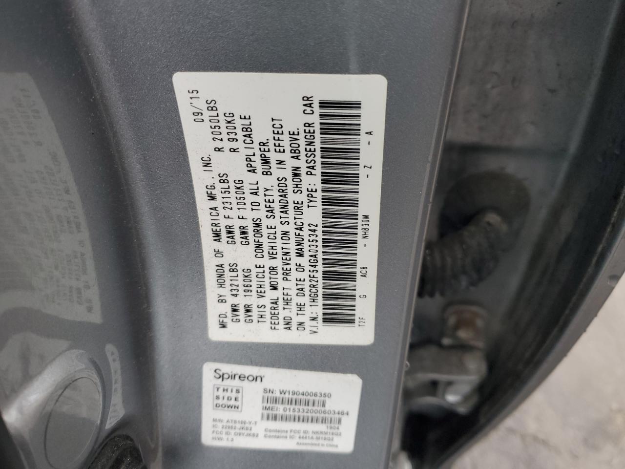Колір СрібнийЦиліндри 4VIN 1HGCR2F54GA035342Стан Заводиться та їде (перевірено)Ушкодження Передня або задня