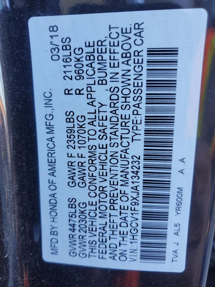 HONDA ACCORD 1.5 2018 р.в., (1HGCV1F9XJA134232) з США
