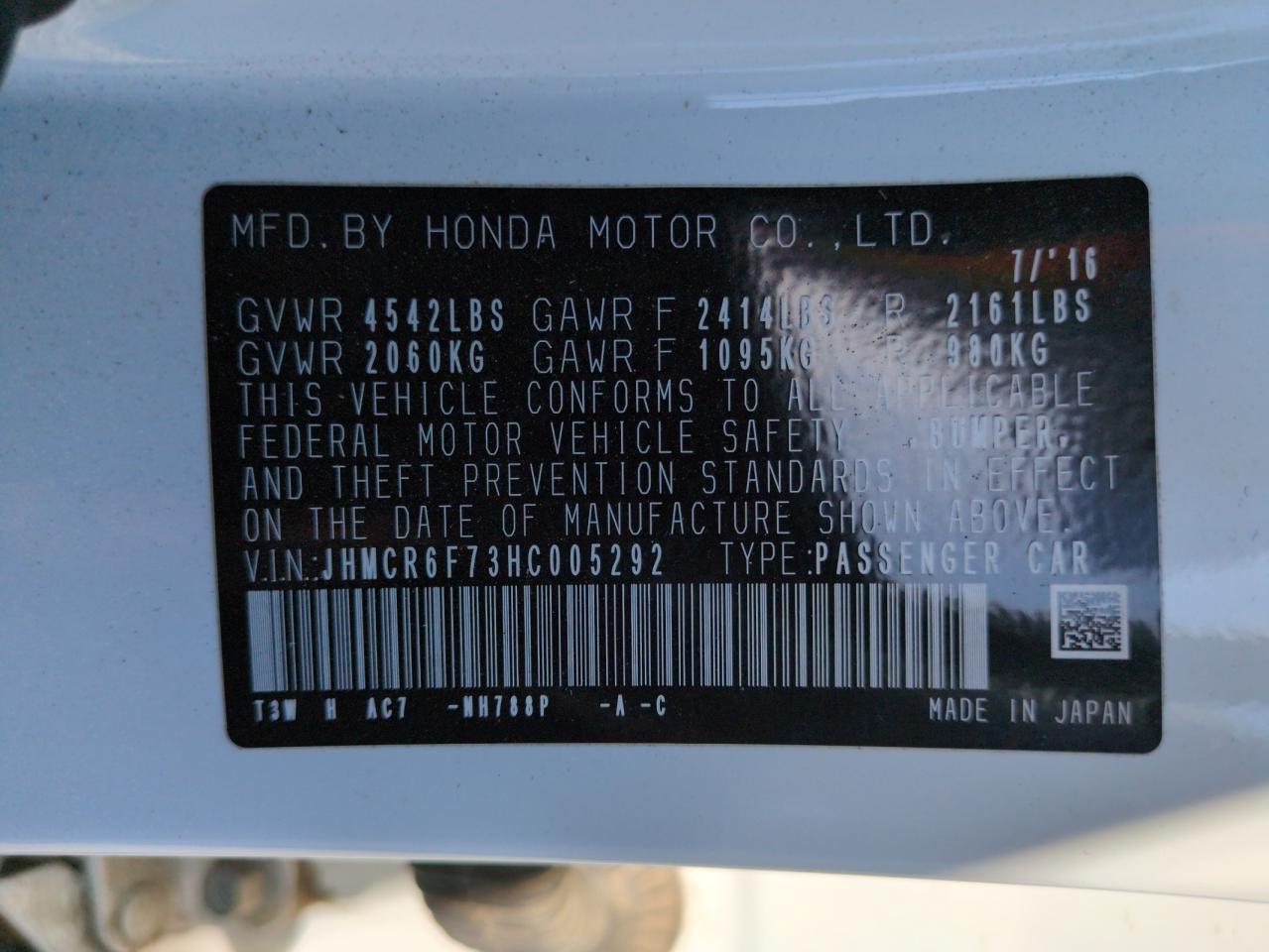 Колір БілийЦиліндри 4VIN JHMCR6F73HC005292Стан Заводиться та їде (перевірено)Ушкодження Передня або задня