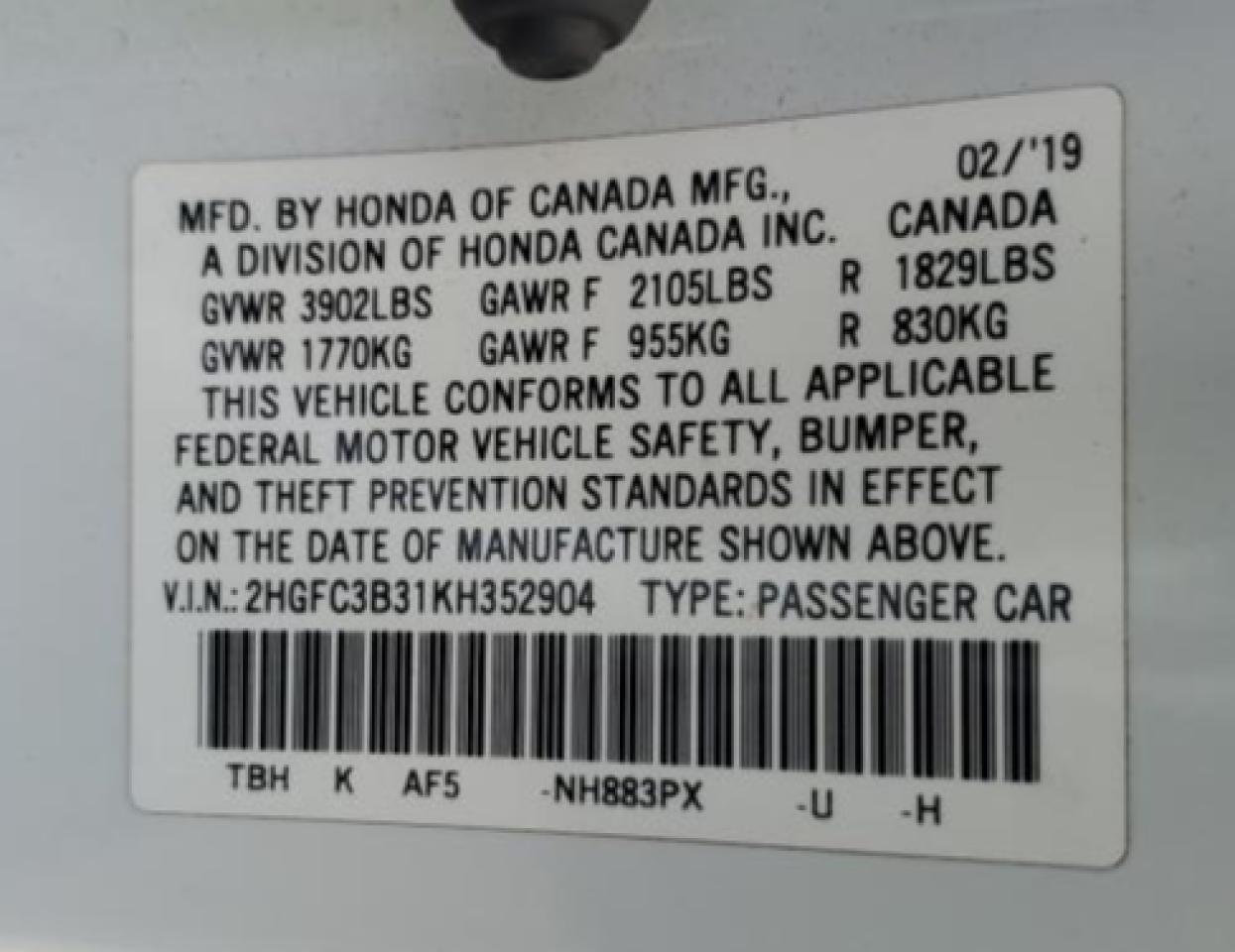 Колір БілийЦиліндри 4VIN 2HGFC3B31KH352904Стан Заводиться та їде (перевірено)Ушкодження Незначні