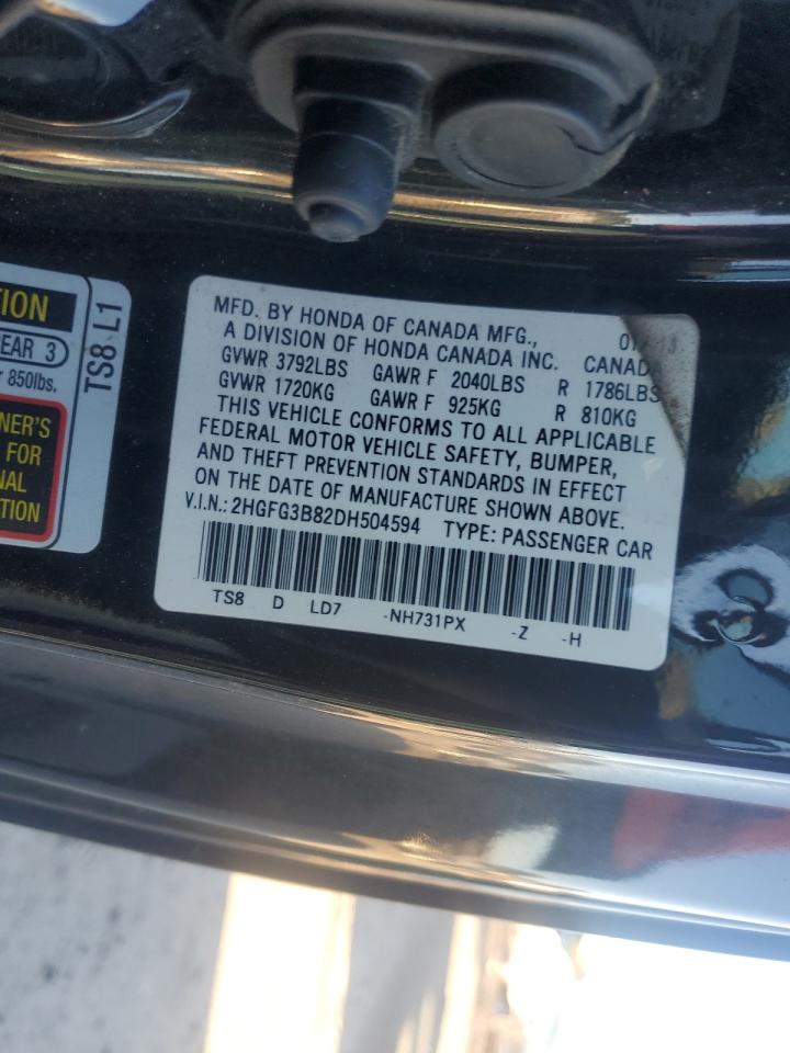 Колір ЧорнийЦиліндри 4VIN 2HGFG3B82DH504594Стан Заводиться та їде (перевірено)Ушкодження Передня або задня