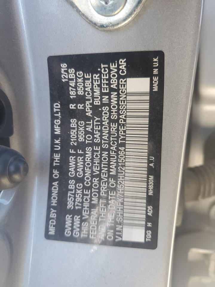 HONDA CIVIC 1.5 2017 р.в., (SHHFK7H52HU215064) з США