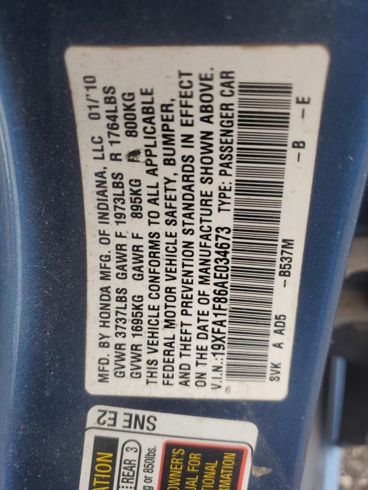 HONDA CIVIC 1.8 2010 р.в., (19XFA1F86AE034673) з США