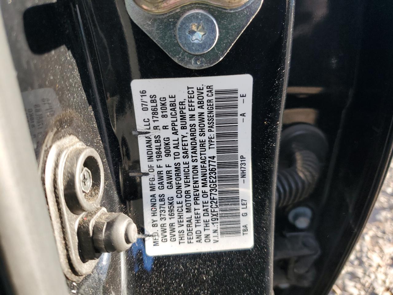HONDA CIVIC 2.0 2016 р.в., (19XFC2F73GE236774) з США