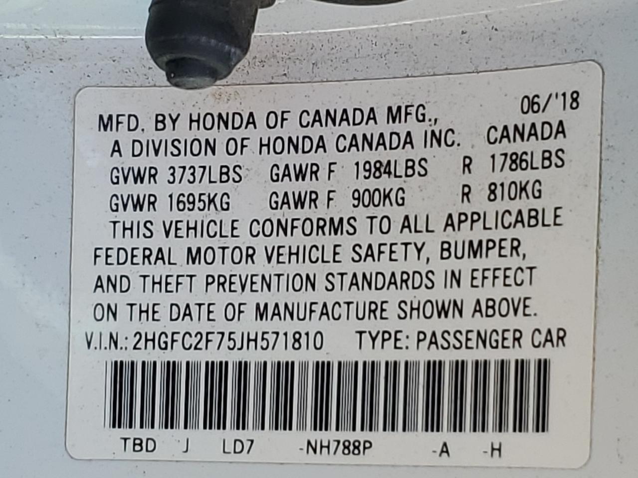 HONDA CIVIC 2.0 2018 р.в., (2HGFC2F75JH571810) з США