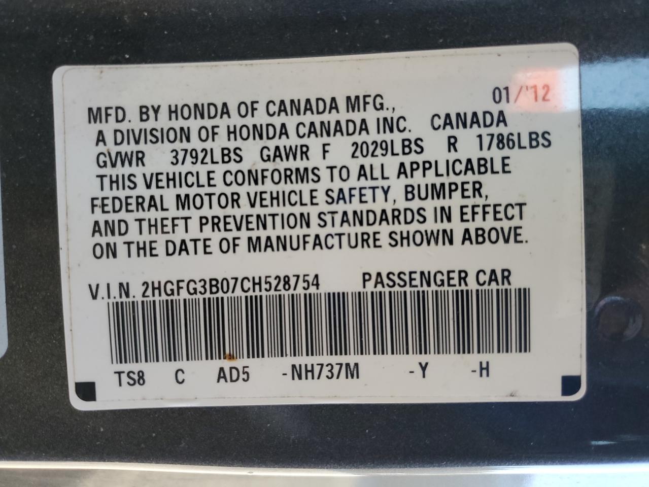 2012 HONDA CIVIC LX