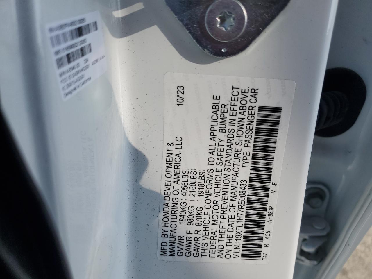 Колір БілийЦиліндри 4VIN 19XFL1H77RE008433Стан НевідомоУшкодження Передня або задня