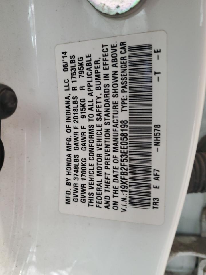 Колір БілийЦиліндри 4VIN 19XFB2F53EE058198Стан НевідомоУшкодження Передня або задня