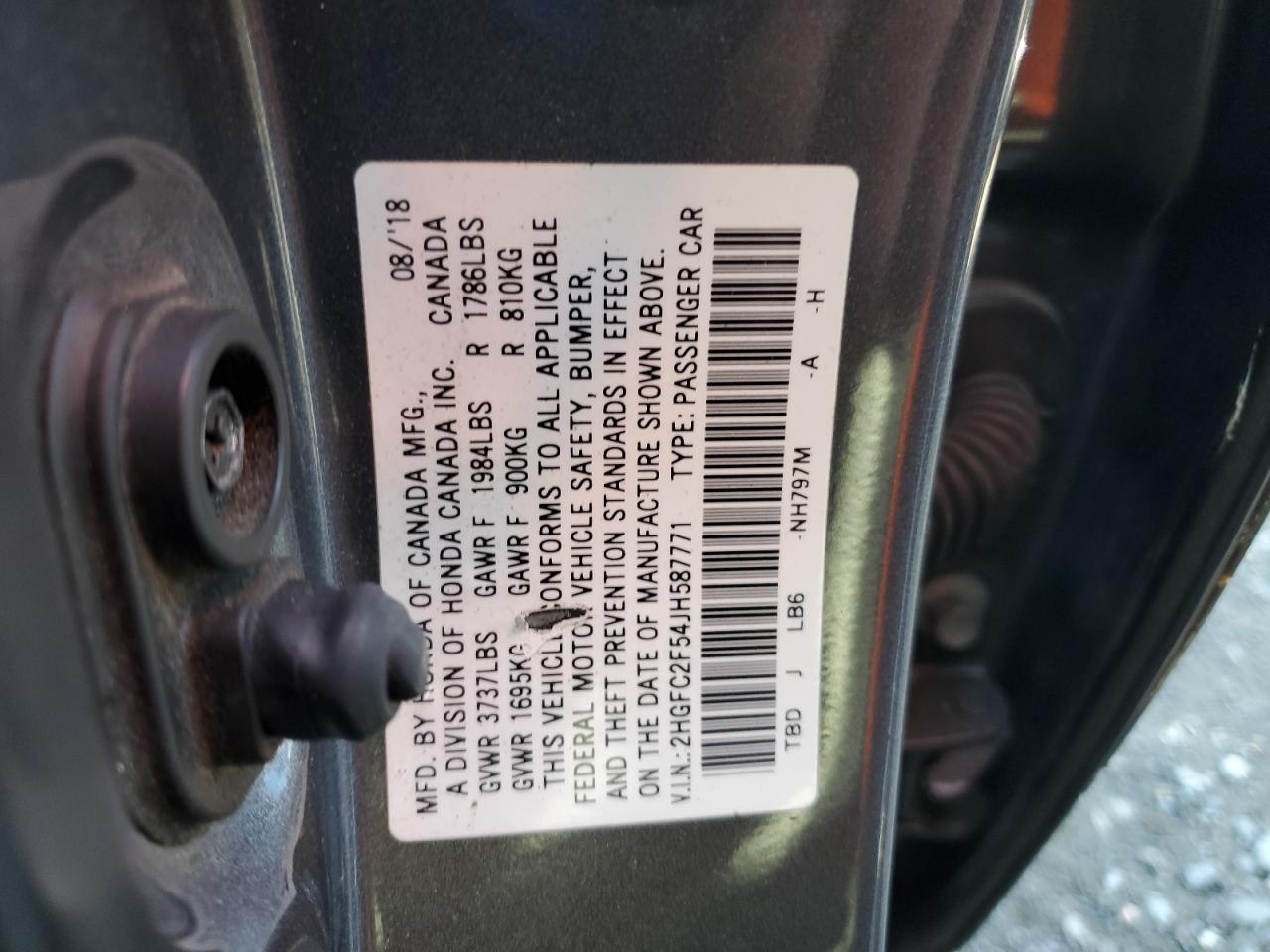 HONDA CIVIC 2.0 2018 р.в., (2HGFC2F54JH587771) з США