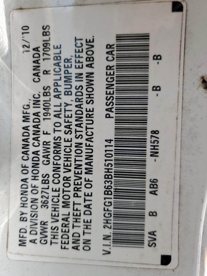 HONDA CIVIC 1.8 2011 р.в., (2HGFG1B63BH510114) з США