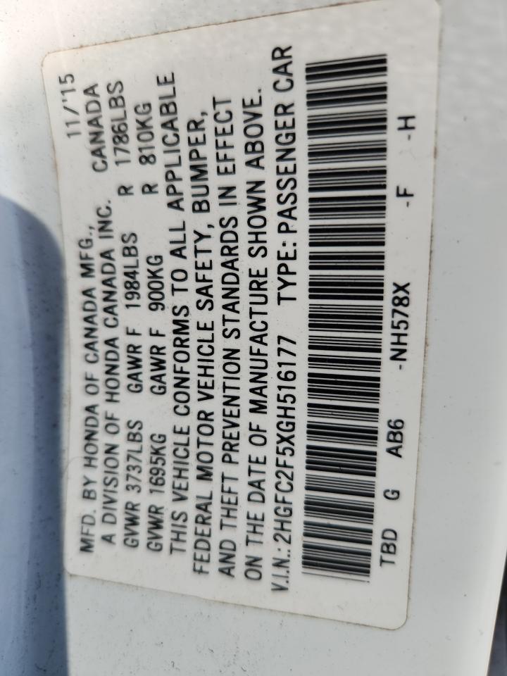 HONDA CIVIC 2.0 2016 р.в., (2HGFC2F5XGH516177) з США