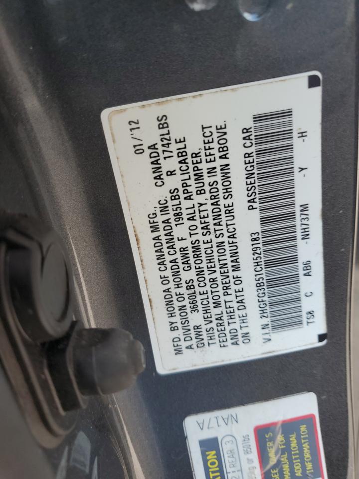 HONDA CIVIC 1.8 2012 р.в., (2HGFG3B51CH529183) з США