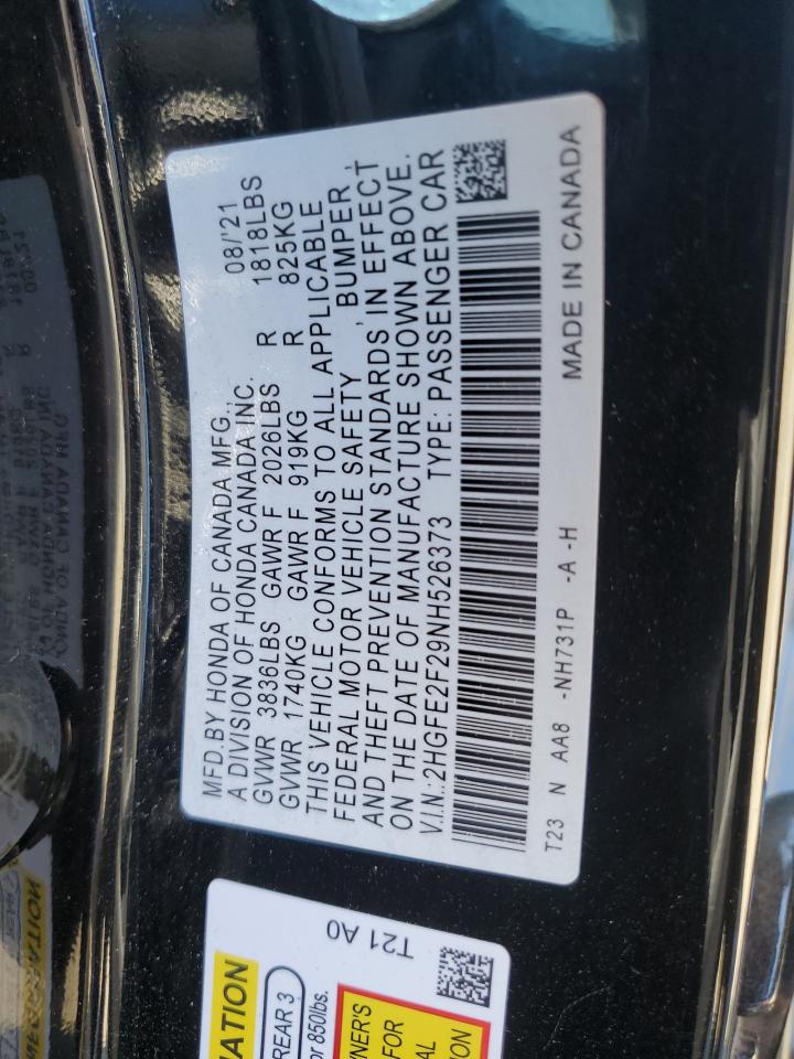 HONDA CIVIC 2.0 2022 р.в., (2HGFE2F29NH526373) з США