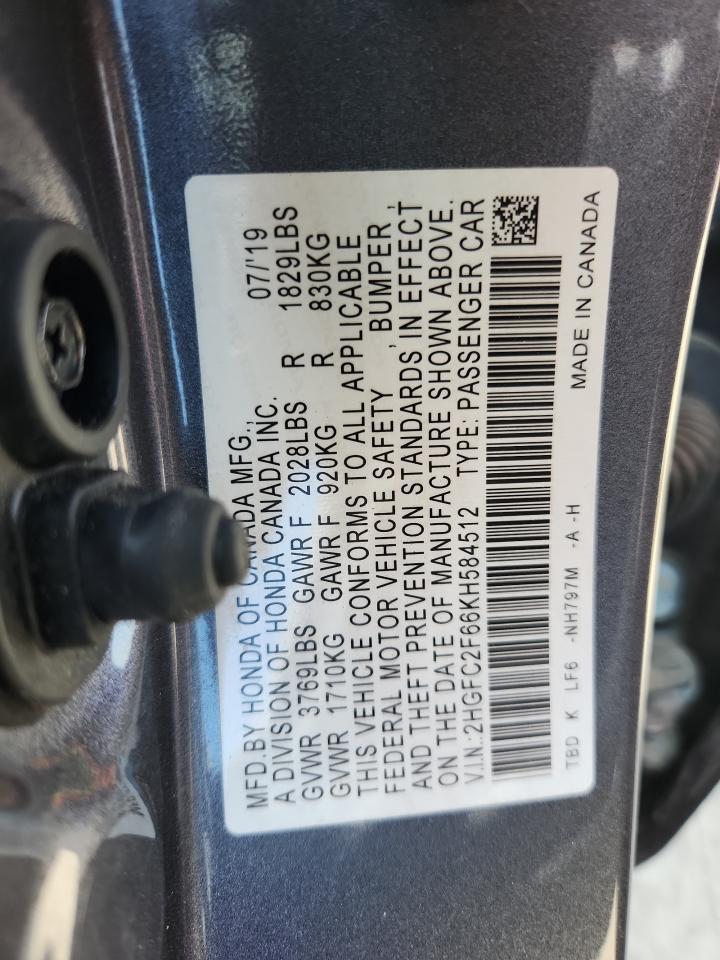 HONDA CIVIC 2.0 2019 р.в., (2HGFC2F66KH584512) з США
