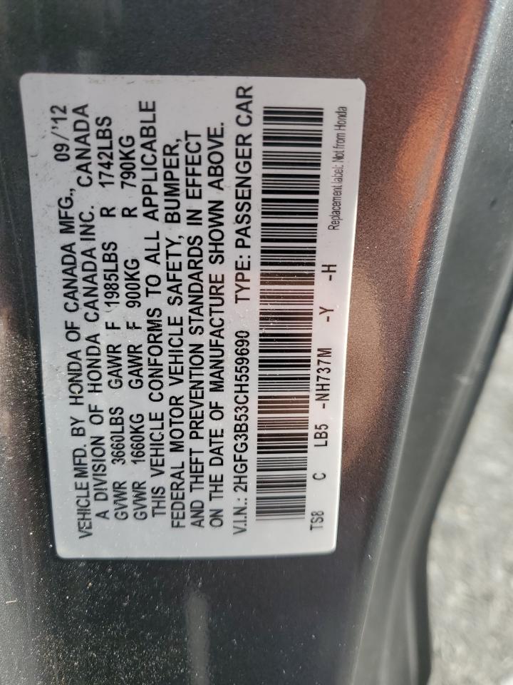 HONDA CIVIC 1.8 2012 р.в., (2HGFG3B53CH559690) з США