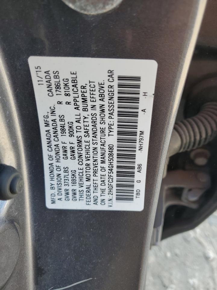 HONDA CIVIC 2.0 2016 р.в., (2HGFC2F54GH508480) з США