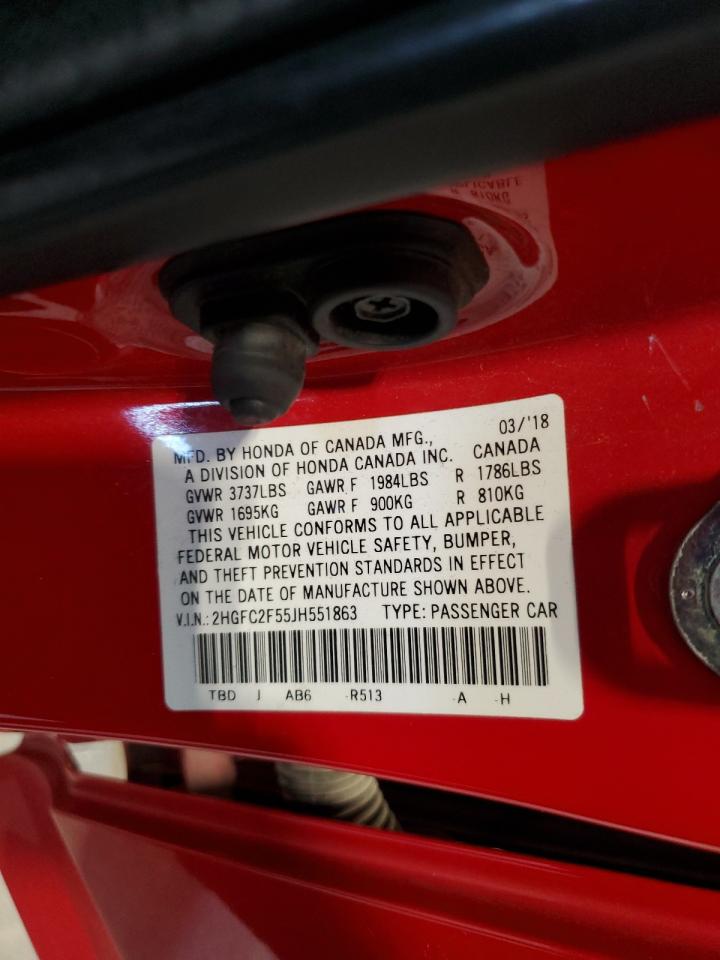 HONDA CIVIC 2.0 2018 р.в., (2HGFC2F55JH551863) з США