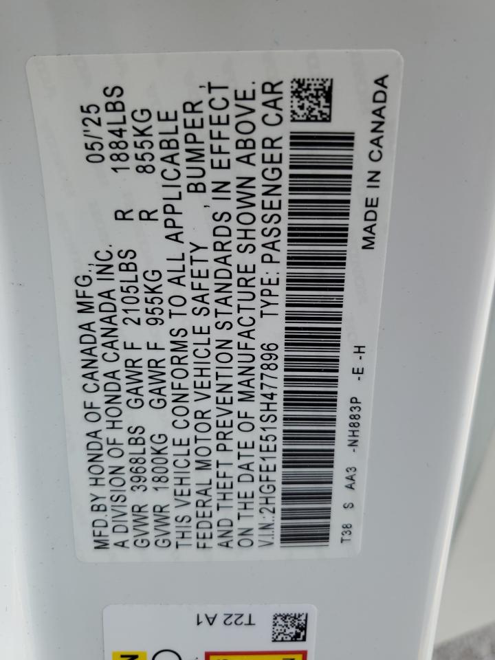 HONDA CIVIC 1.5 2025 р.в., (2HGFE1E51SH477896) з США