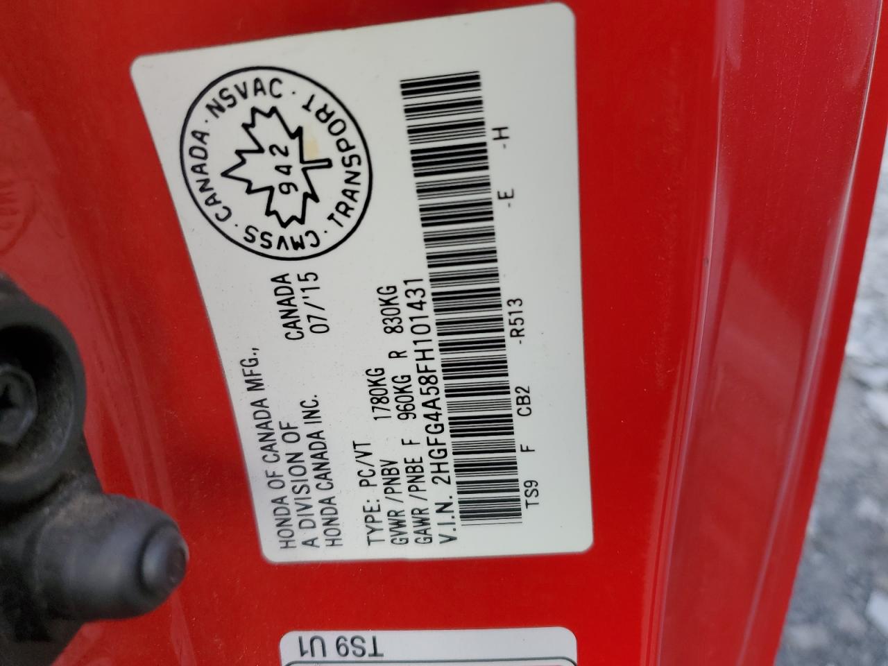 Колір ЧервонийЦиліндри 4VIN 2HGFG4A58FH101431Стан НевідомоУшкодження Передня або задня