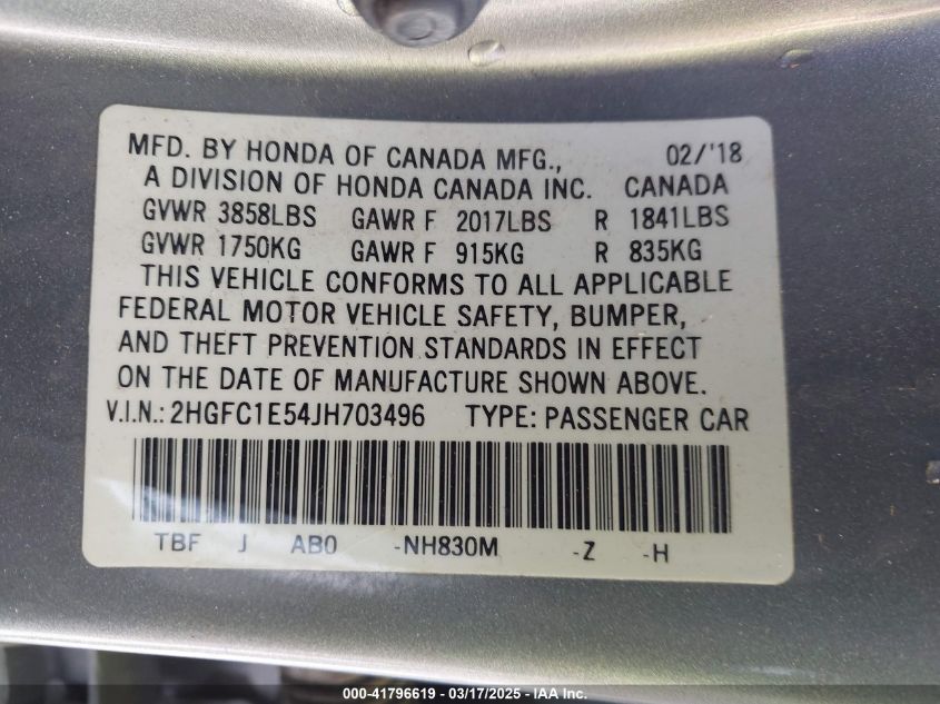 HONDA CIVIC 1.5 2018 р.в., Передній привід (2HGFC1E54JH703496) з США