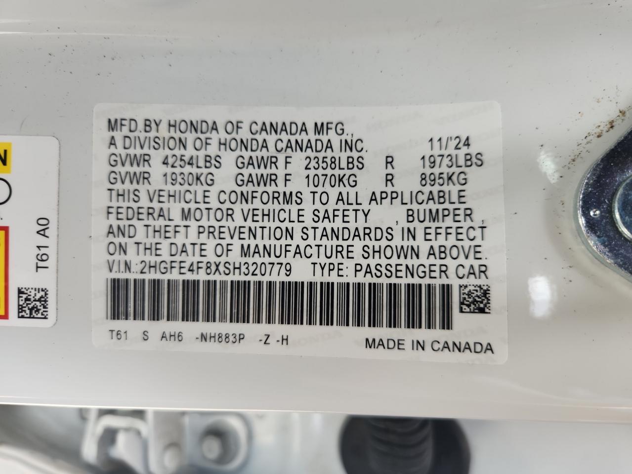 HONDA CIVIC 2.0 2025 р.в., (2HGFE4F8XSH320779) з США