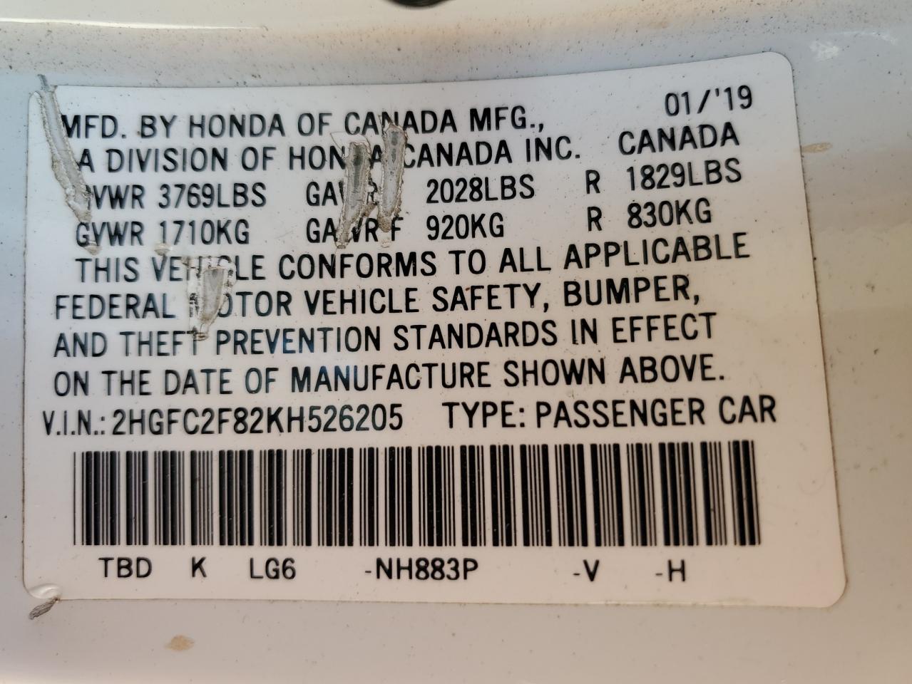 HONDA CIVIC 2.0 2019 р.в., (2HGFC2F82KH526205) з США