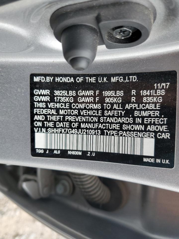 HONDA CIVIC 1.5 2018 р.в., (SHHFK7G49JU210913) з США
