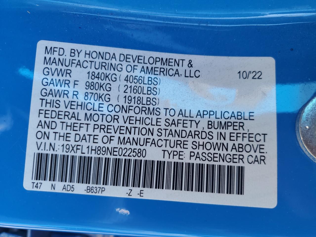 HONDA CIVIC 1.5 2022 р.в., (19XFL1H89NE022580) з США