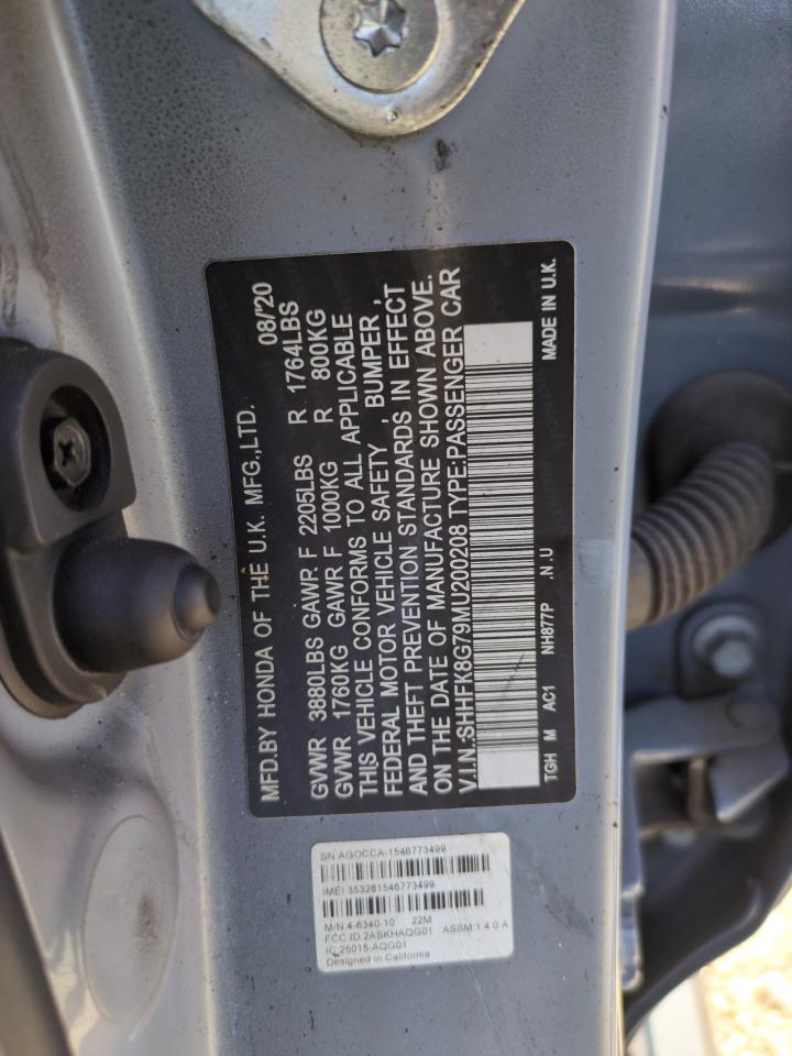 HONDA CIVIC 2.0 2021 р.в., (SHHFK8G79MU200208) з США