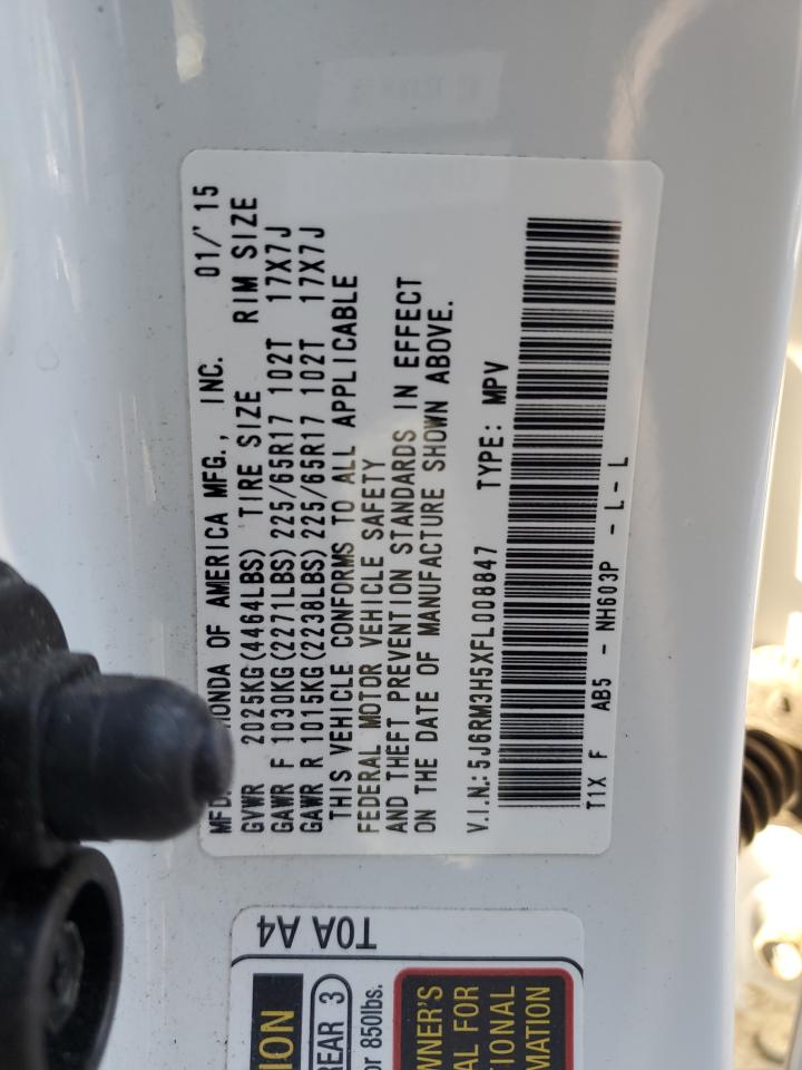 Колір БілийЦиліндри 4VIN 5J6RM3H5XFL008847Стан Заводиться та їде (перевірено)Ушкодження Передня або задня