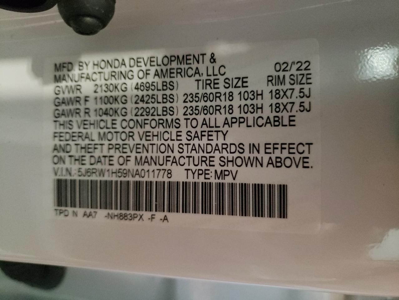 Колір БілийЦиліндри 4VIN 5J6RW1H59NA011778Стан Заводиться та їде (перевірено)Ушкодження Передня або задня