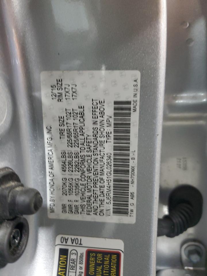 Колір СрібнийЦиліндри 4Привід Повний привідVIN 5J6RM4H51GL026340Стан Заводиться та їде (перевірено)Ушкодження З боків