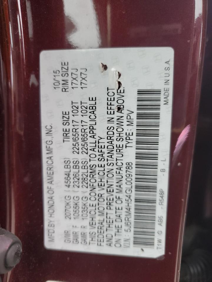 HONDA CR-V 2.4 2016 р.в., Повний привід (5J6RM4H54GL009788) з США