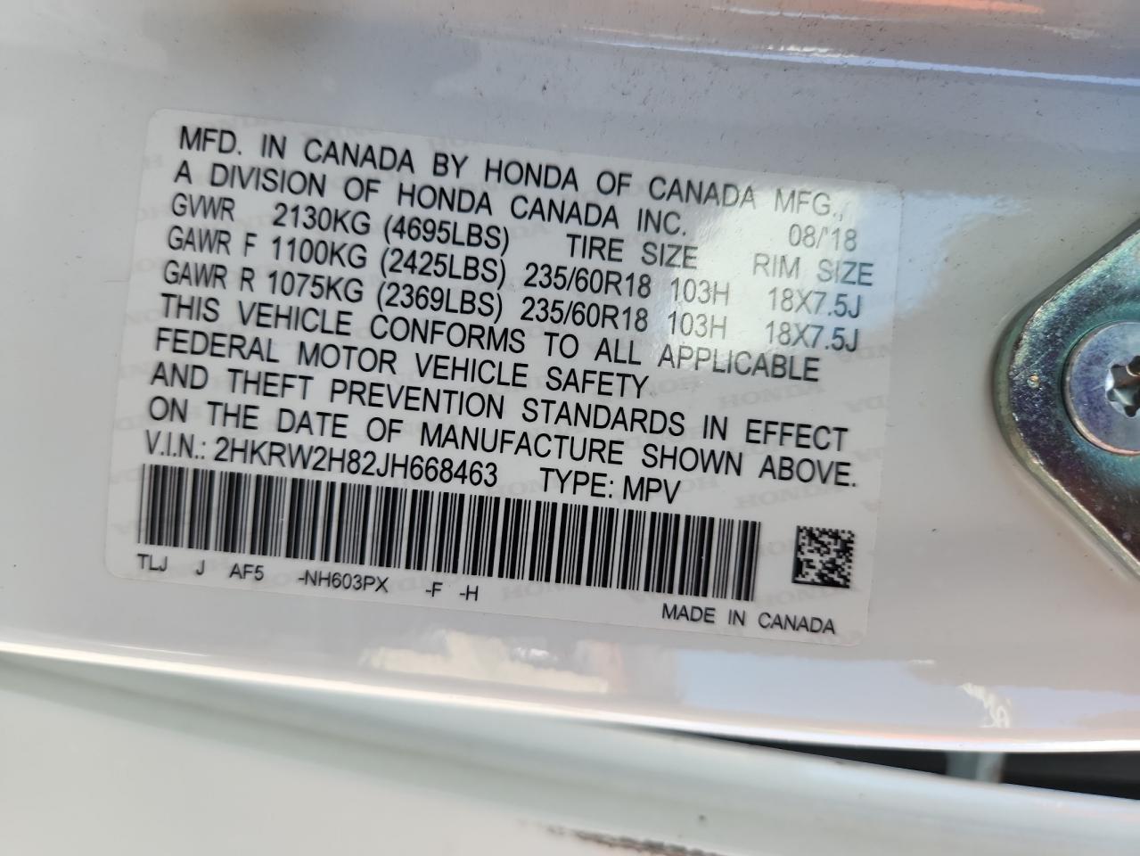 HONDA CR-V 1.5 2018 р.в., Повний привід (2HKRW2H82JH668463) з США