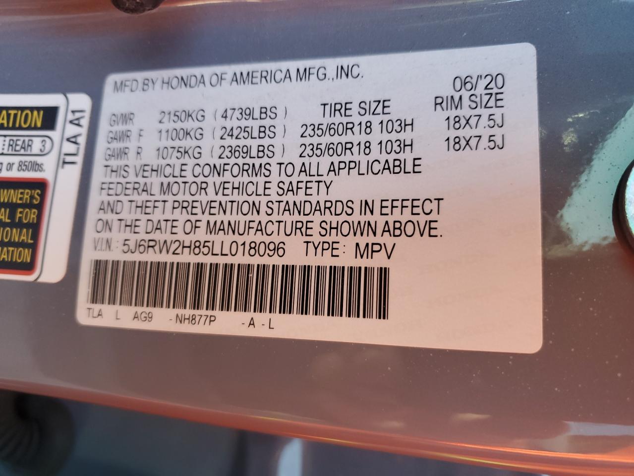 HONDA CR-V 1.5 2020 р.в., Повний привід (5J6RW2H85LL018096) з США
