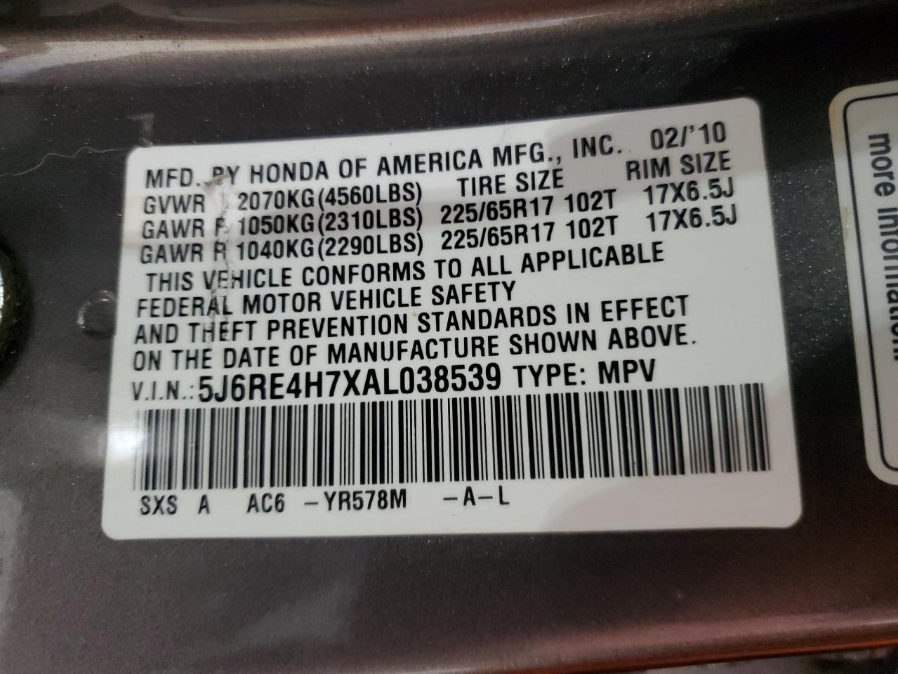 2010 HONDA CR-V LX