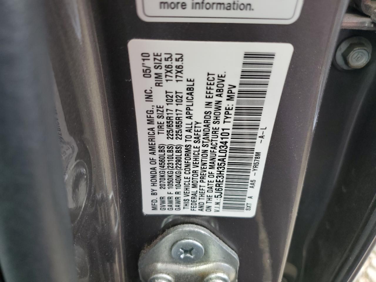 HONDA CR-V 2.4 2010 р.в., (5J6RE3H35AL034101) з США