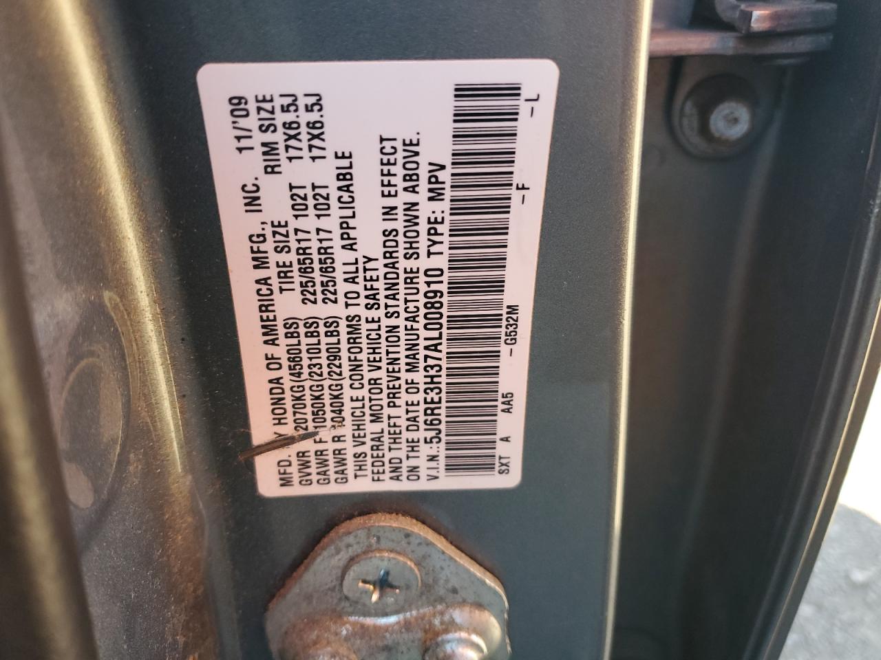 HONDA CR-V 2.4 2010 р.в., (5J6RE3H37AL008910) з США