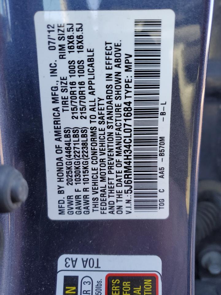 Колір СинійЦиліндри 4Привід Повний привідVIN 5J6RM4H34CL071684Стан НевідомоУшкодження Передня або задня