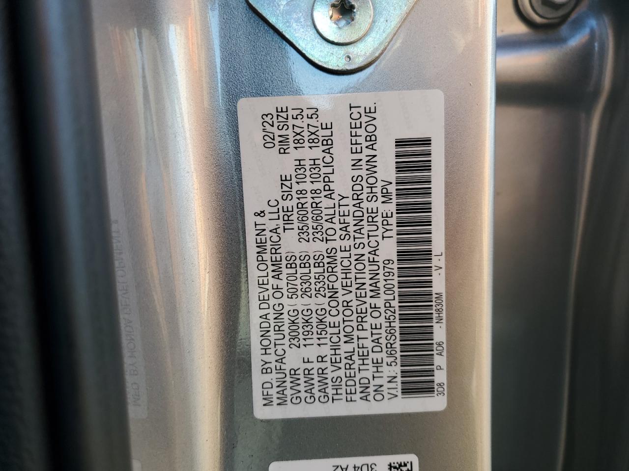 HONDA CR-V 2.0 2023 р.в., Повний привід (5J6RS6H52PL001979) з США