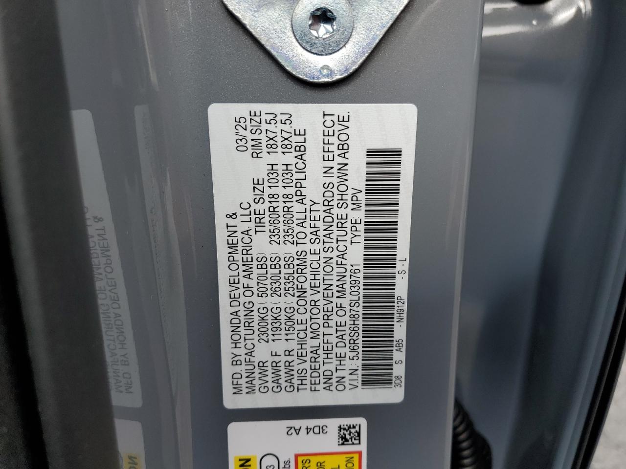 HONDA CR-V 2.0 2025 р.в., Повний привід (5J6RS6H87SL039761) з США